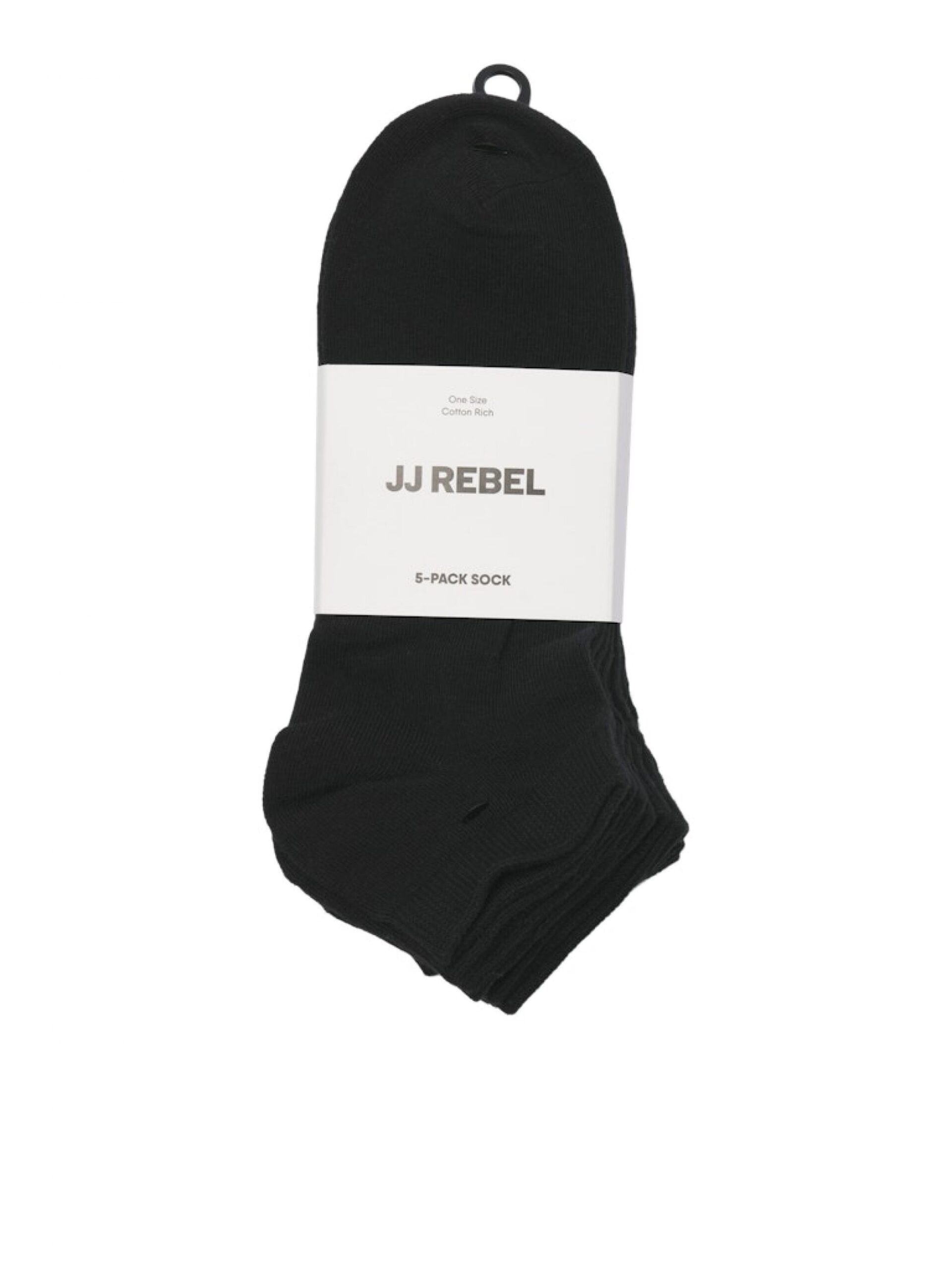 No-show socks made from a durable, breathable cotton blend. Designed with a JJ Rebel logo print